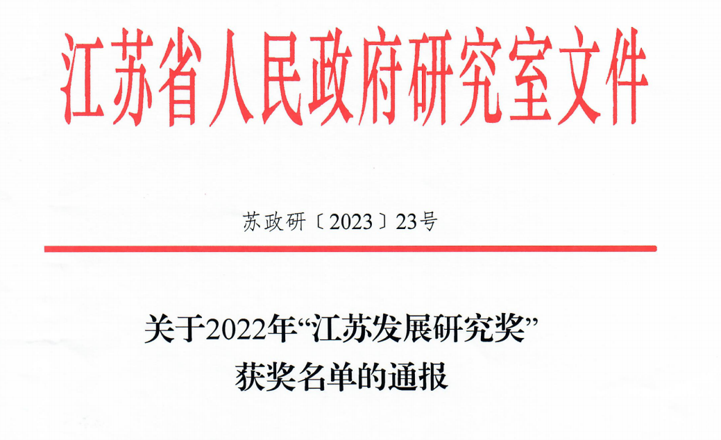 据悉,江苏发展研究奖旨在着力推进新型智库建设,不断提高调查研究实效,持续增强决策服务能力,形成一批有特色、有影响的调研成果。此次获奖标志着团队研究成果得到了社会各界的认可,对于团队成员进一步提高研究水平、积极投入服务地方建设也是一次重要的激励。